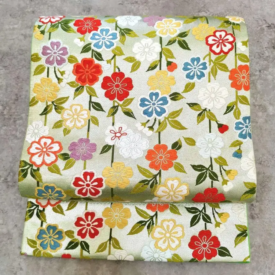 [ 꽃밭 ] 레어한 그린 컬러풀 꽃밭인 사치 가라오리 후쿠로 오비