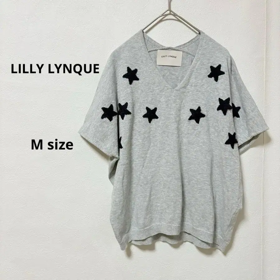 LILLY LYNQUE 별 패턴 니트 M 그레이 반팔 돌먼 슬리브
