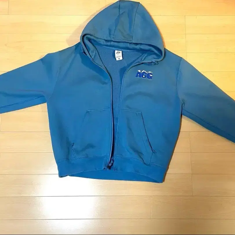 AGC 로고가 있는 파란색 풀 집업 후드티