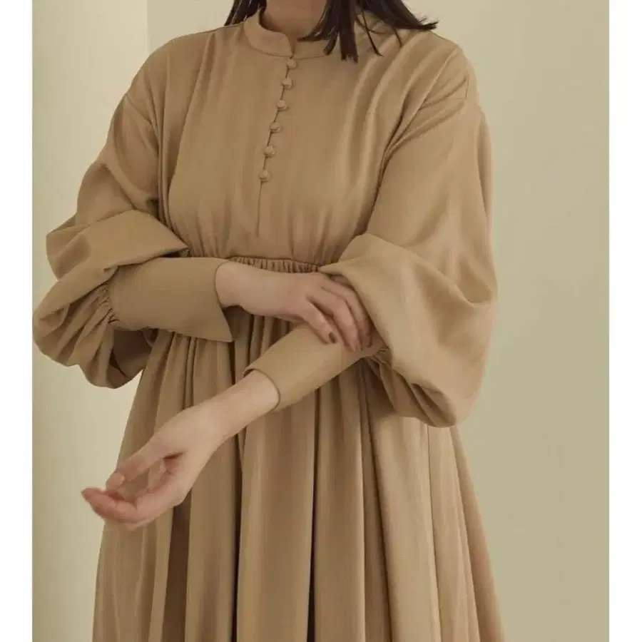 Alumu flare gather button 원피스 베이지