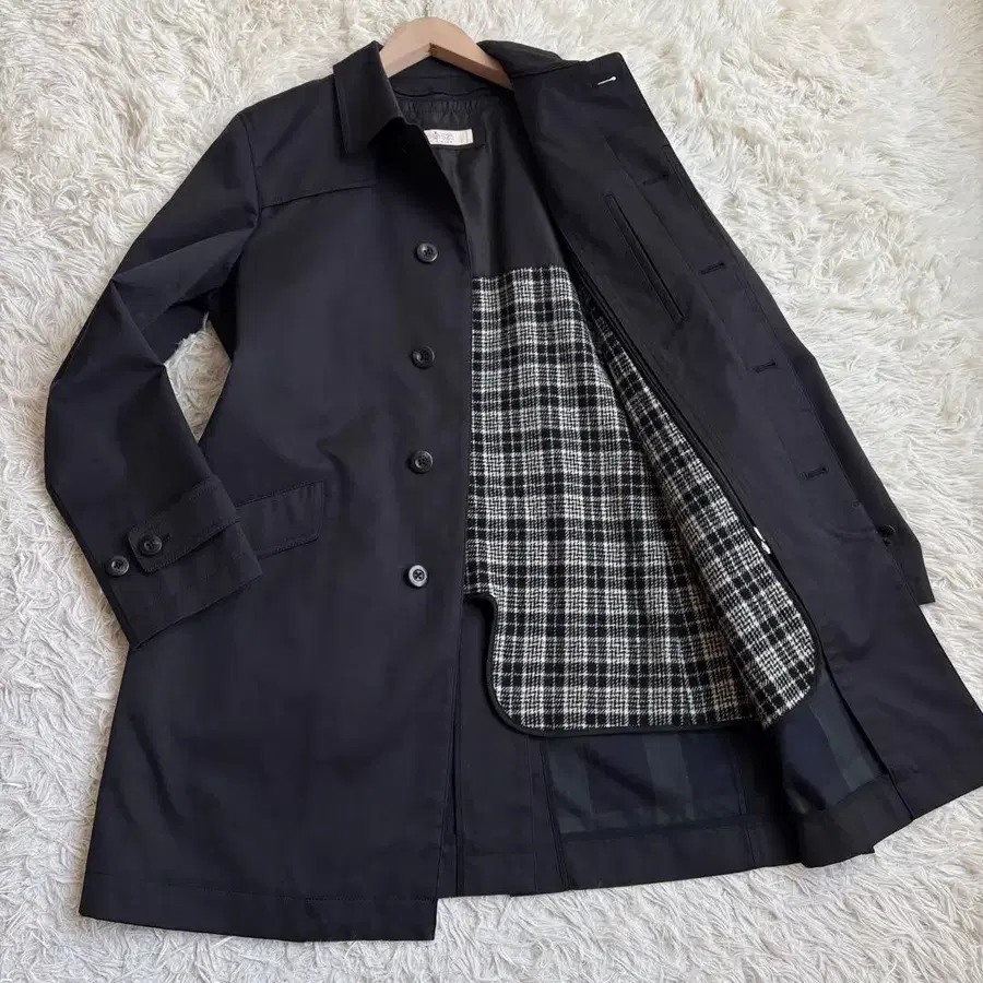 새상품급 다케오 키쿠치 트렌치코트 울 라이너 하운드투스 체크 2way