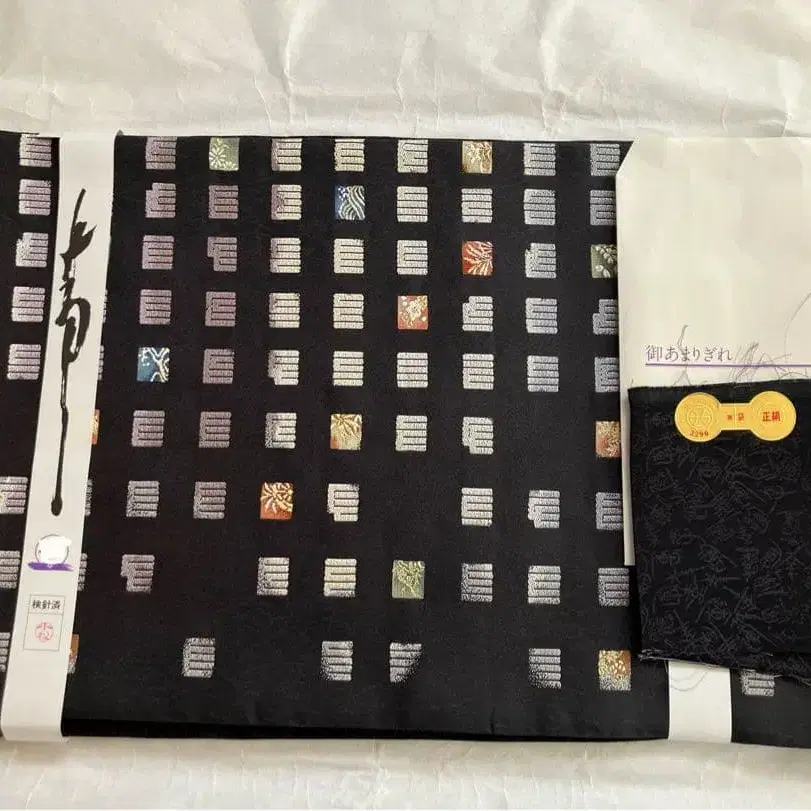 니시진 비단 카와세 미츠루 직물 변화 체크 패턴 후쿠로 오비 생 실크