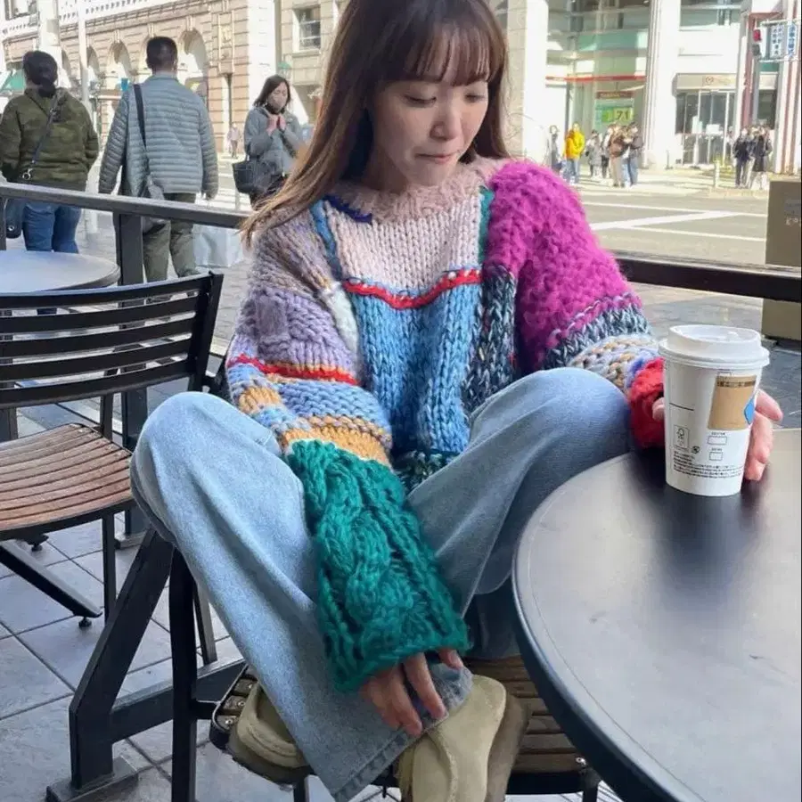 엘르마르 MIX얀 블로킹 니트 패치워크 니트