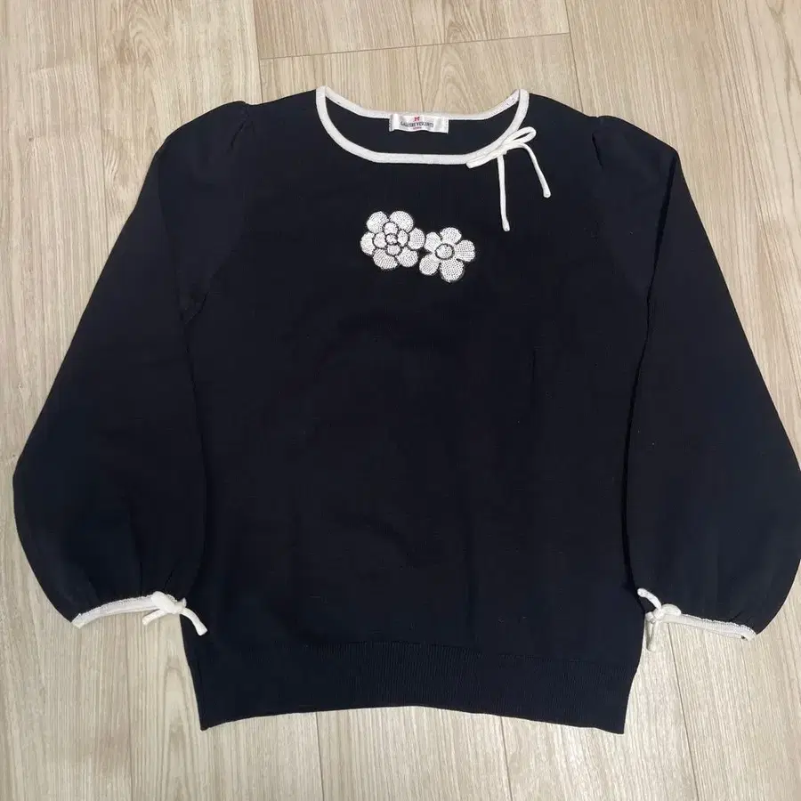 갤러리 비스콘티 니트 스웨터 스팽글 꽃 리본 사이즈 3