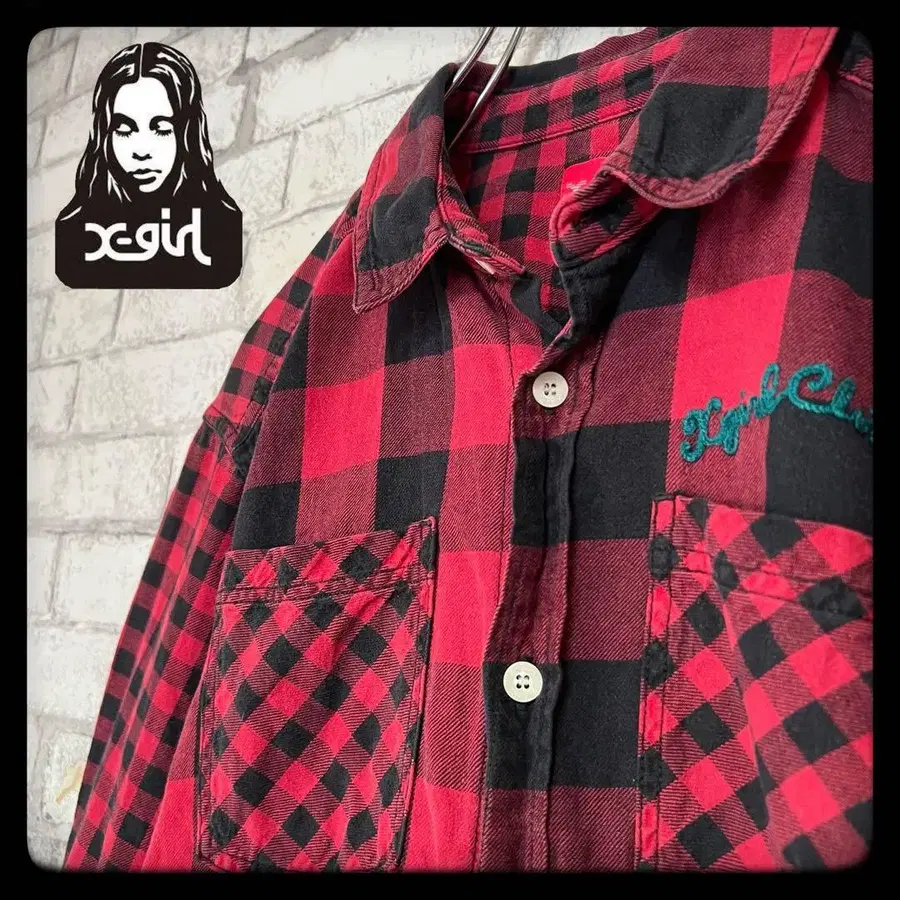 X-GIRL 엑스걸 블록 체크 긴팔 플란넬 셔츠