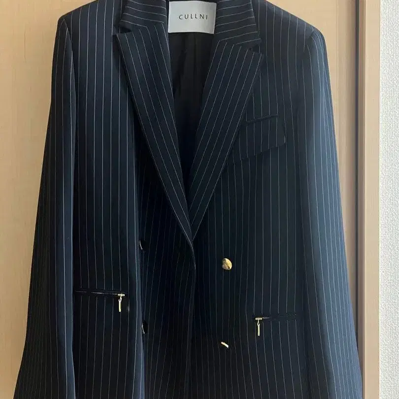스트라이프 지퍼 포켓 더블 테일러드 자켓