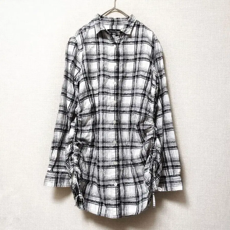 셔링 셔츠 블라우스 모노톤 체크 y2k 튜닉 기장