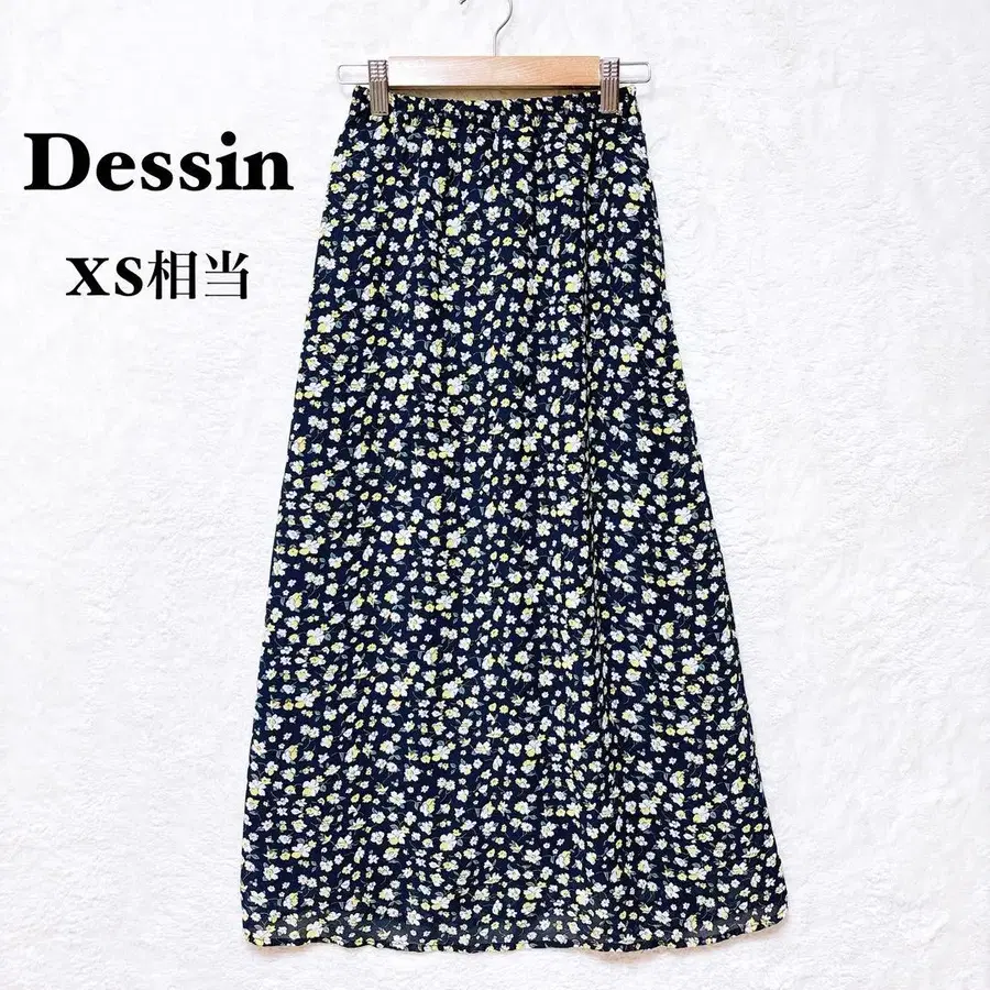 데셍 플레어 스커트 꽃무늬 롱 기장 허리밴딩 XS 상당 네이비