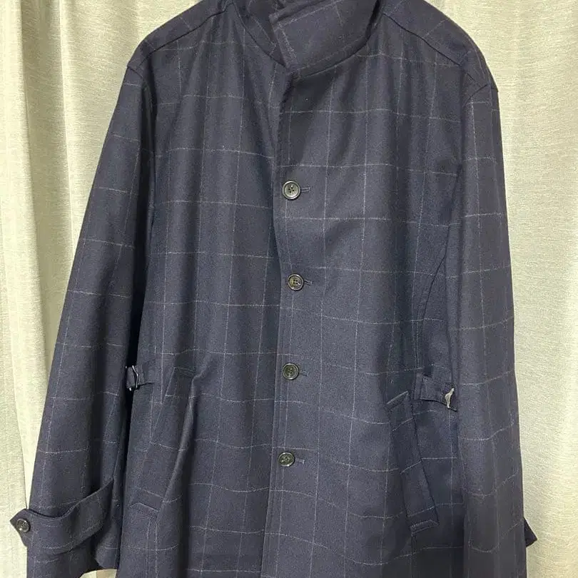 네이비 체크 무늬 남성용 코트