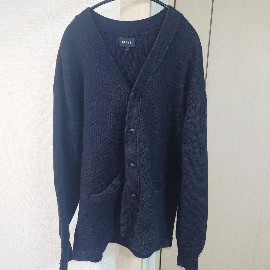 BEAMS 폴리코튼 블랙 가디건 L