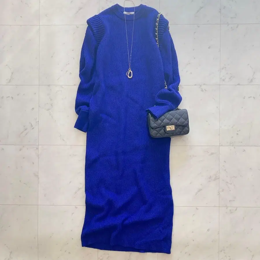 새상품급 앙슬리드 파워 숄더 니트 원피스 36 블루