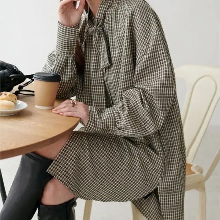 DISCOAT 디스코트 체크 보타이 블라우스 블랙
