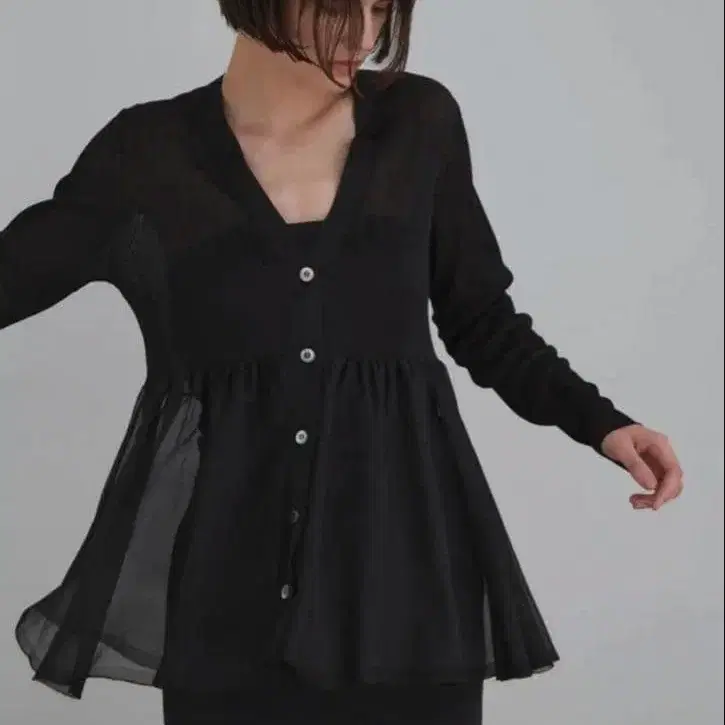 루피 le phil 시어 플레어 가디건 블랙
