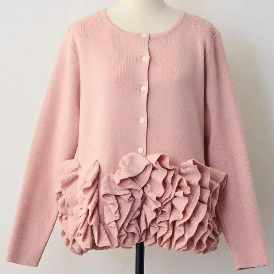 Frene 2025 신상 프릴 휘핑 니트 가디건 핑크