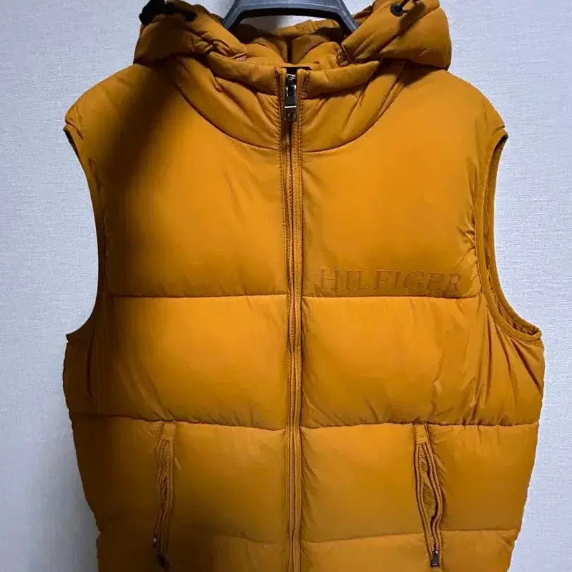 HILFIGER 후드 부착 다운 베스트 머스타드