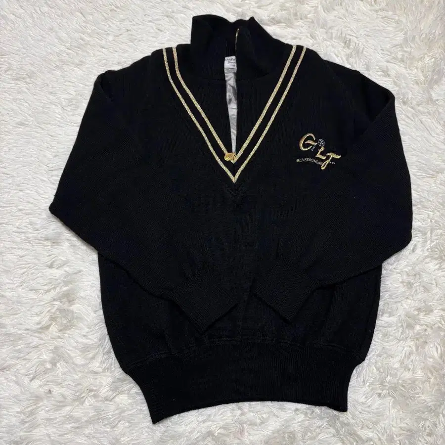 먼싱웨어 골프 니트 블랙 금 라인 자수 로고 하프 지퍼
