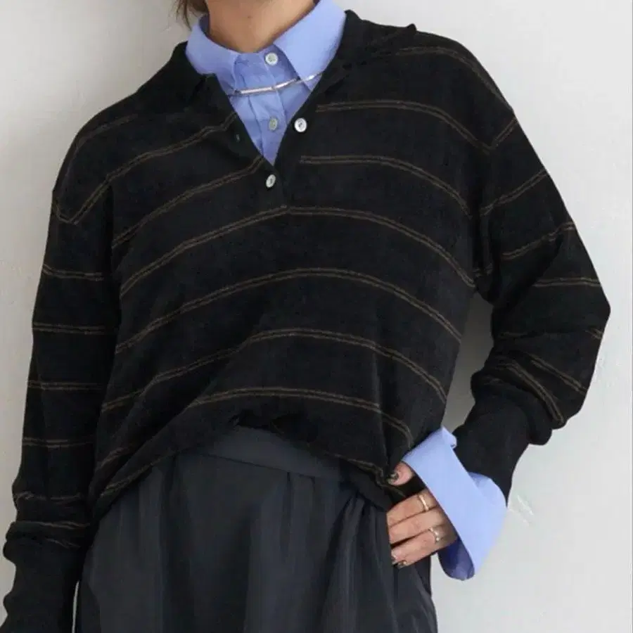 벨로아 니트 롱 슬리브 피케 셔츠 네이비 저널 스탠다드