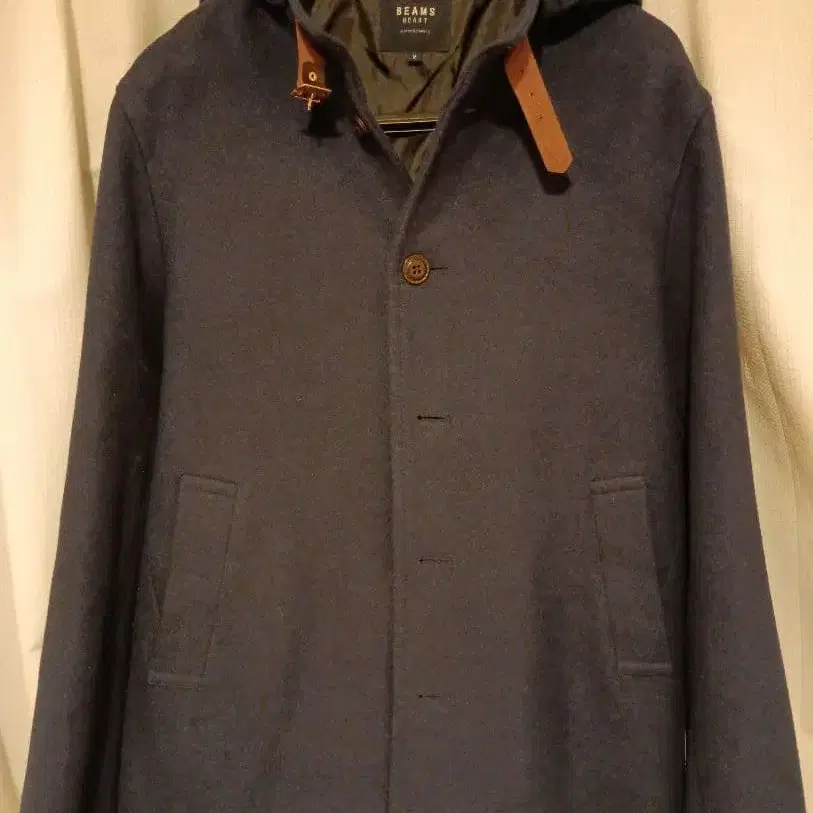 BEAMS HEART 후드 부착 네이비 코트 M 남성용