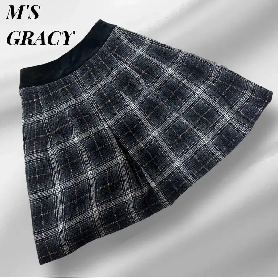 엠즈 그레이시 체크 턱 스커트 무릎 기장 플레어 울 38