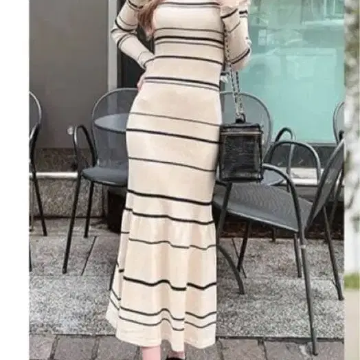 rady 퍼프숄 머메이드 보더 니트 원피스 리브 레이디