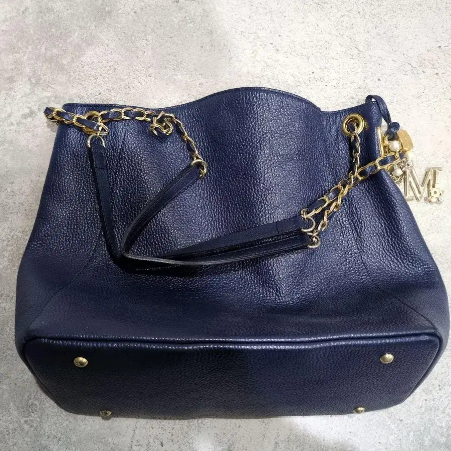 네이비 가죽 숄더백