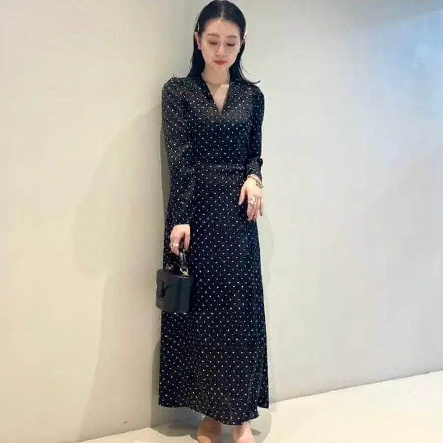 광택이 있는 새틴 소재가 클래시컬한 도트 원피스입니다.
