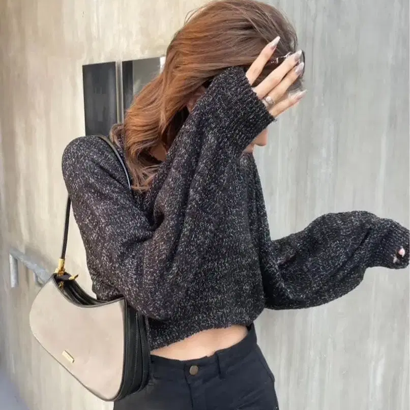 diante DIANTE 벌룬 슬리브 크롭 글리터 니트