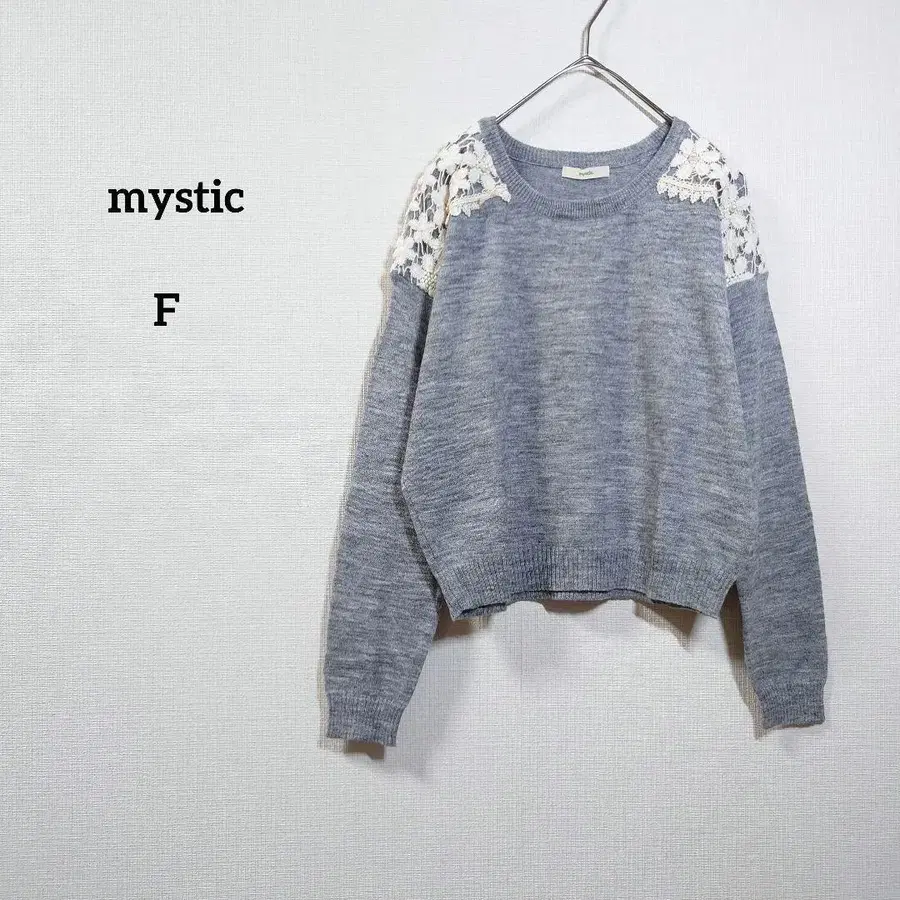 mystic 니트 스웨터 자수 꽃무늬 그레이 프리 사이즈 울