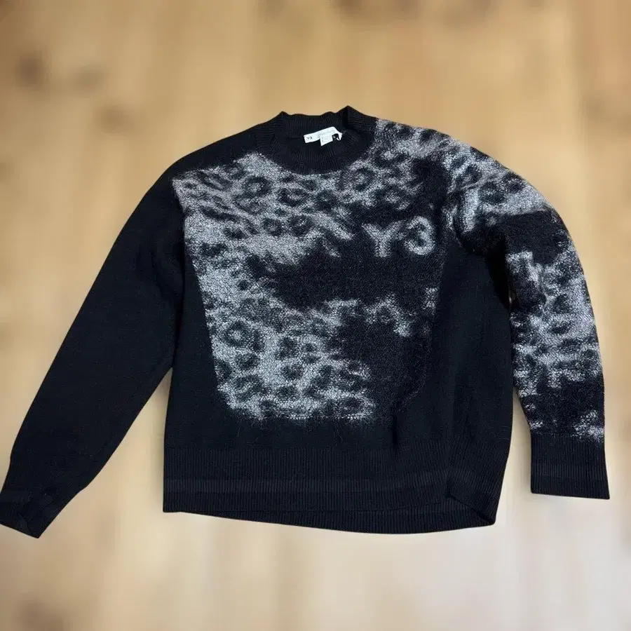 Y-3 블랙 레오파드 무늬 니트 스웨터 XS