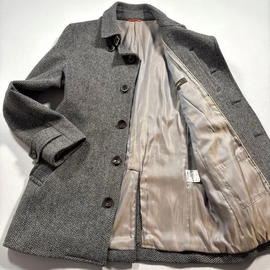 컨디션 최상 꼼사맨 헤링본 멜톤 울 마린 코트 소가죽 벨트