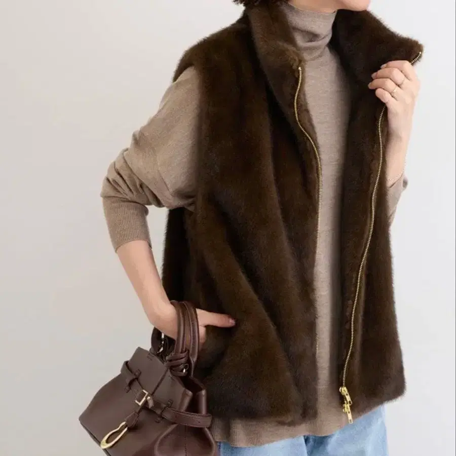 스탠드 카라 퍼 베스트