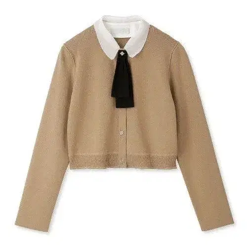 탈부착 가능한 옷깃과 보타이가 달린 총알사 가디건입니다. 직접 커스텀하여 여러 가지 스타일로 즐기실 수 있습니다. 몸통 니트는 총알사 편직으로 튼튼하게 제작되었으며, 중간 정도의 두께감으로 긴 시즌 동안 착용 가능합니다. 짜임은 플랫하고 심플한 대신, 밑단은 천축 봉제와 리브로 요철감을 주었습니다. 어깨에 섬세한 천축 롤을 넣어 입체감을 준 것도 세심한 포인트입니다. 기장은 짧게 나와 하이웨스트 하의와 코디네이트를 추천합니다. 펄과 비쥬를 조합한 반짝이는 단추는 작은 사이즈감으로 고급스럽습니다. 옷깃은 비침과 은은한 광택이 있는 오간자로, 가장자리에 컷팅된 섬세한 지그재그 디자인을 더했습니다. 보타이 리본은 약간 세로줄이 들어간 표면감 있는 원단을 사용했으며, 기울기 고정되어 있어 그대로 착용 가능합니다.