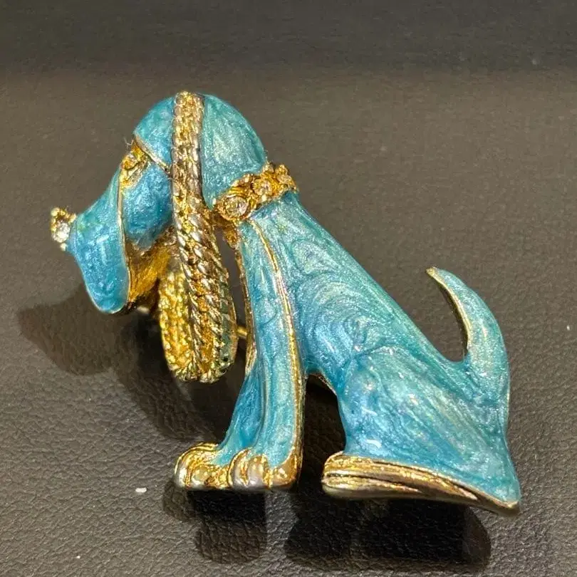 강아지 브로치 파랑 골드 컬러 입체 디자인
