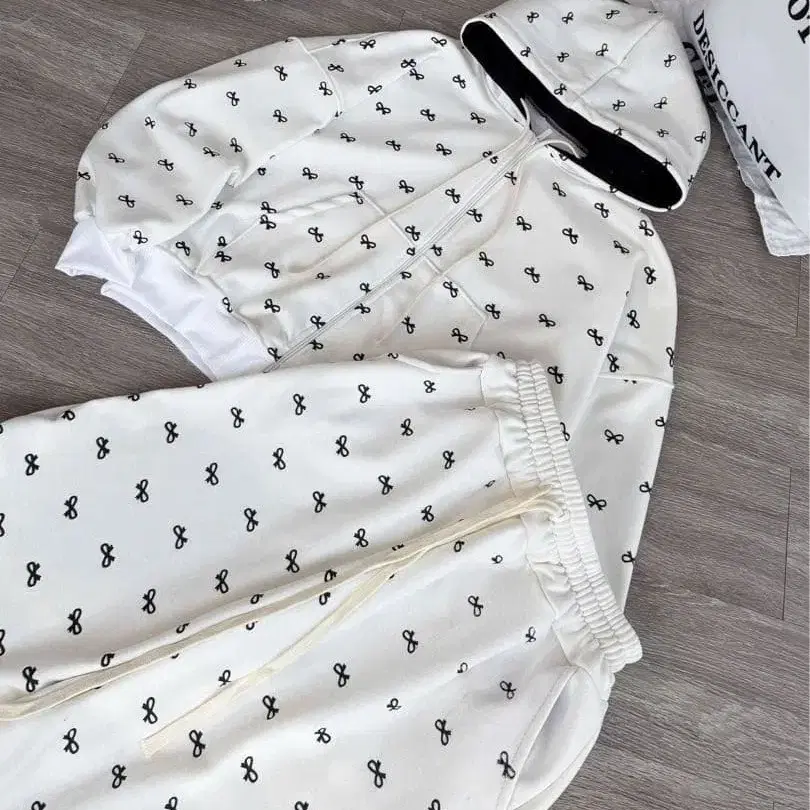가을/겨울 여성용 셋업 리본 무늬 후드티 와이드 팬츠