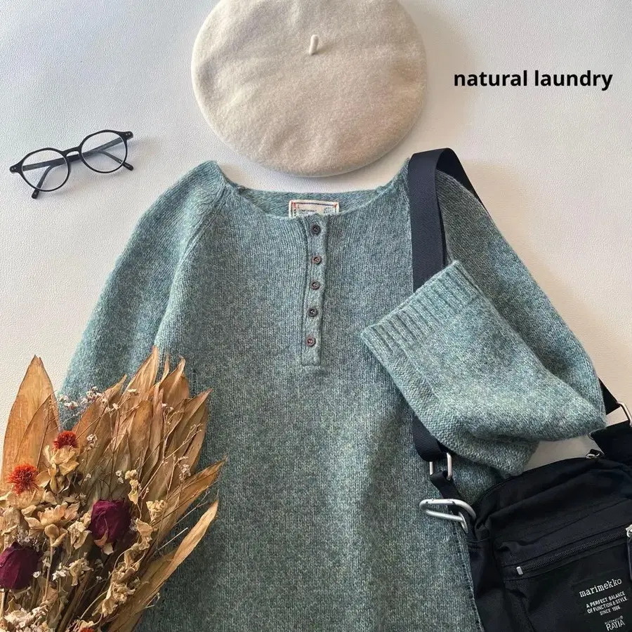 b1810* 내추럴 런드리 헨리넥 울 니트 풀오버
