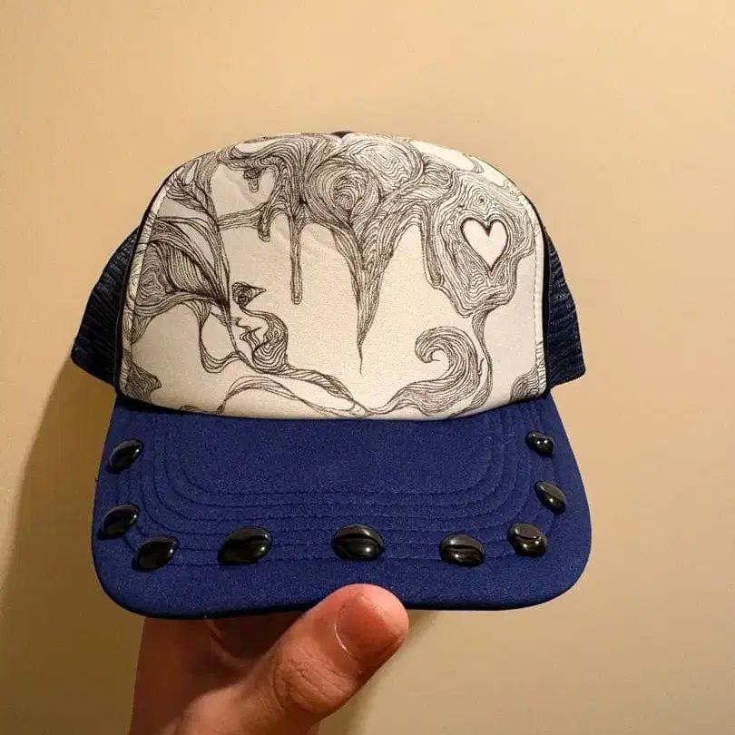 파란색 트래커햇 추상 아트 디자인 리메이크 캡