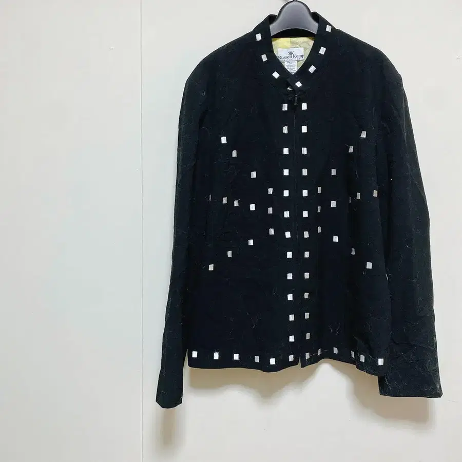 자동 번역되었어요. 원문보기블랙 컬러의 긴팔 가디건, 정사각형 장식이 특징.