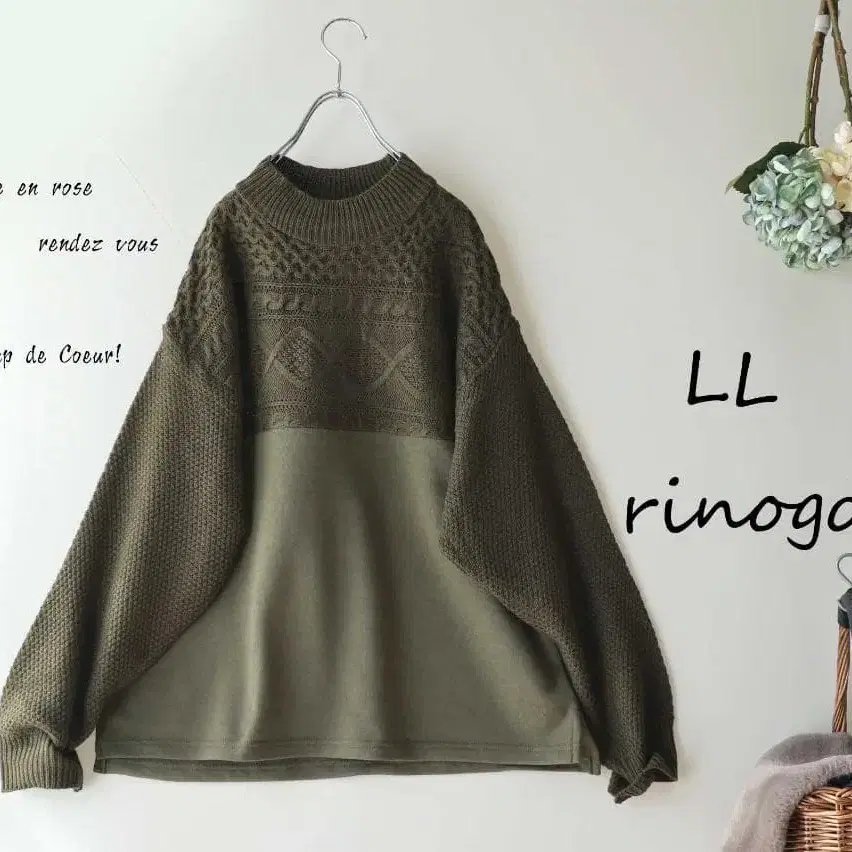 새상품 할인 LL 카키 케이블 니트 절개 맨투맨 상의 빅 사이즈