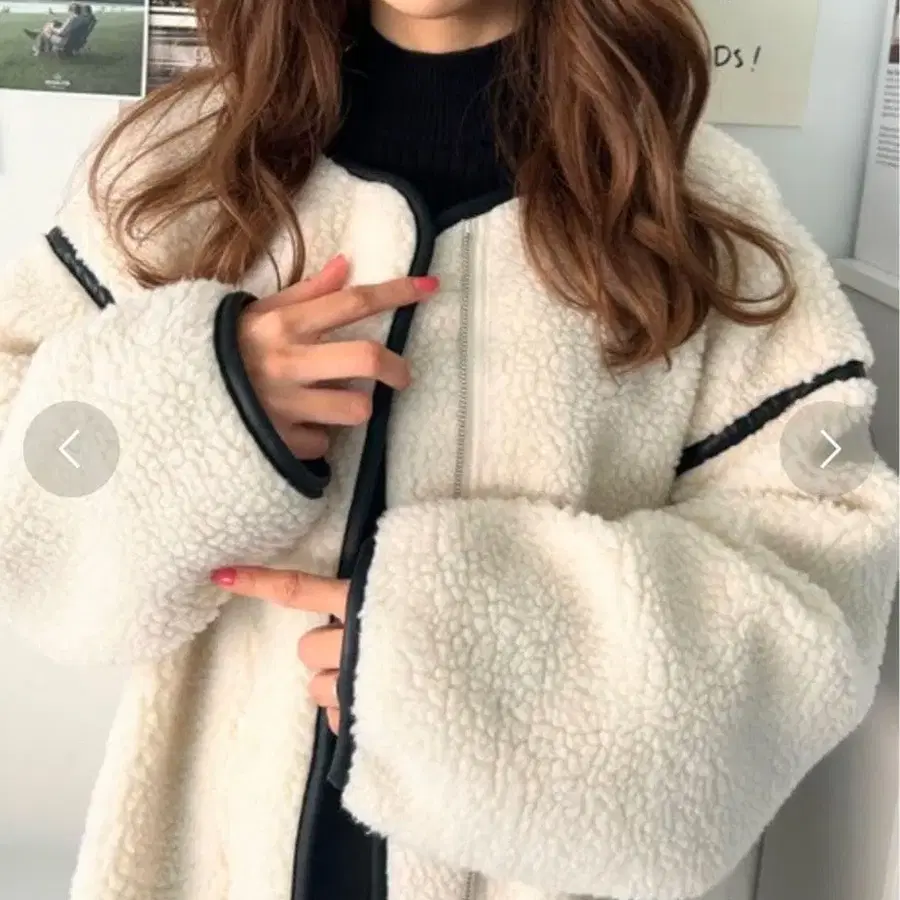 복슬복슬 보아 가죽 파이핑 노카라 자켓