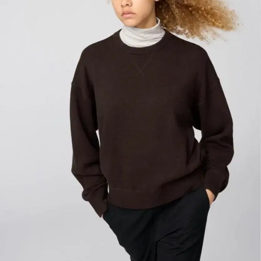 스무스 코튼 크루넥 스웨터 다크 브라운 유니클로