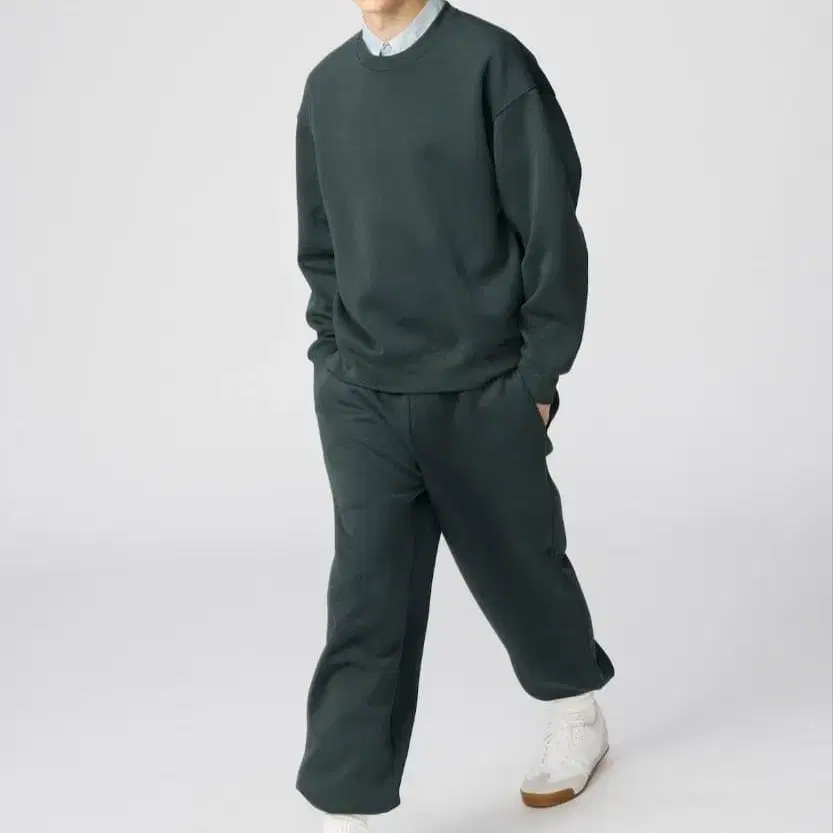 유니클로C 맨투맨 와이드 팬츠 다크 그린 L
