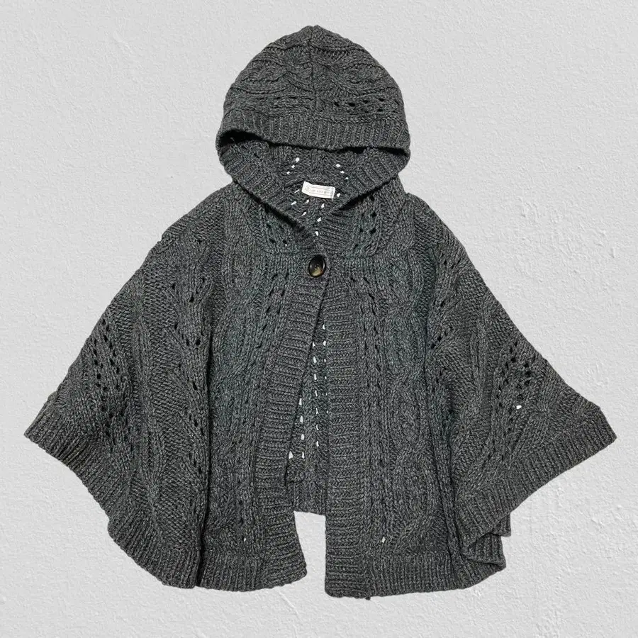 후드 부착 케이블 니트 판초