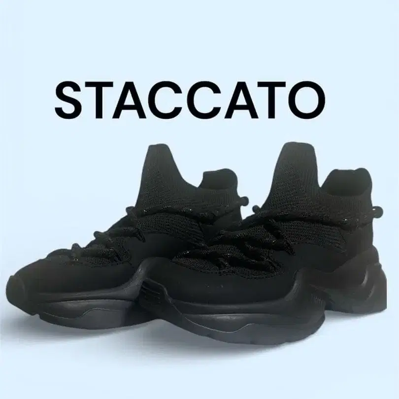 STACCATO 블랙 하이컷 통굽 스니커즈