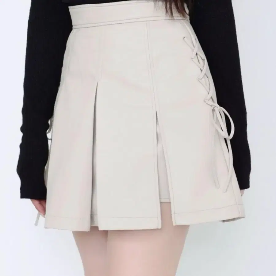EATME 레이스업 인조 가죽 플리츠 스커트 아이보리 M 사이즈