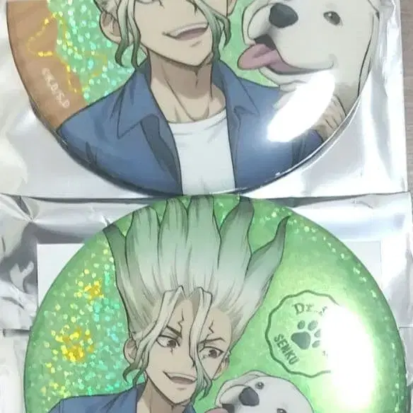이시가미 센쿠 75mm 키라키라 캔뱃지 닥터 스톤 with dogs