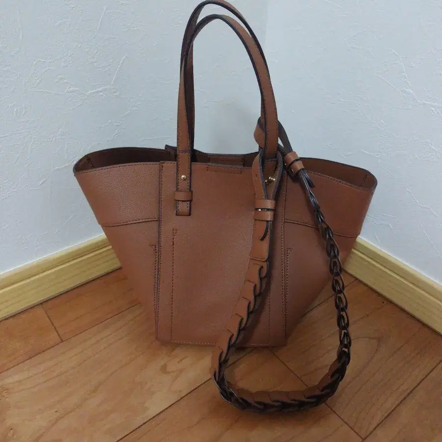 브라운 토트백 합성 피혁 뜨개질 핸들