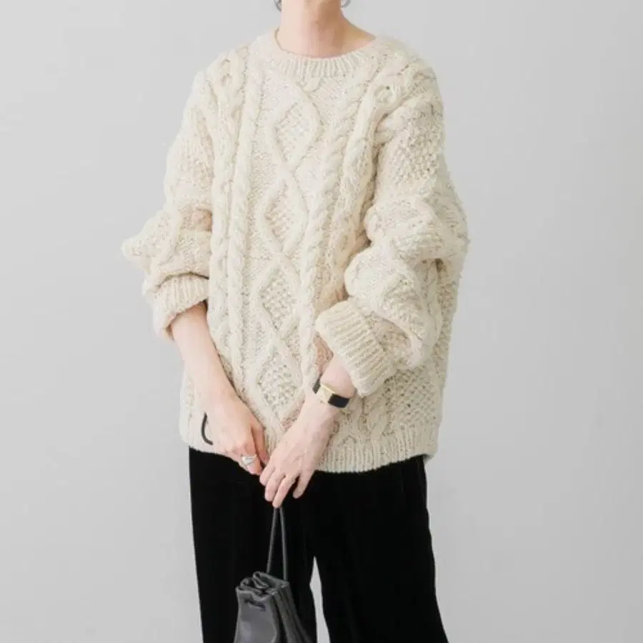 새상품급 24년 카구레 페루 아란 크루넥 니트 아이보리 모 100