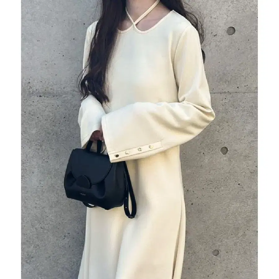아이보리 플레어 슬리브 롱 드레스