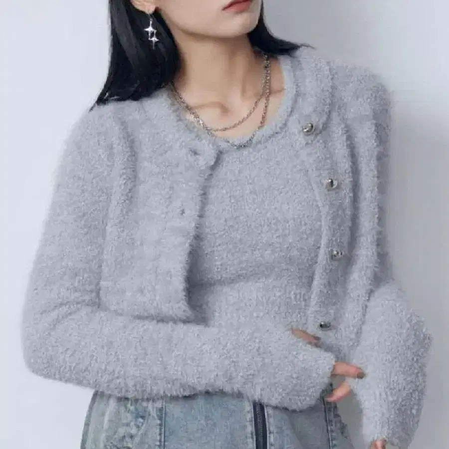 그레이 크롭 니트 가디건 F 사이즈