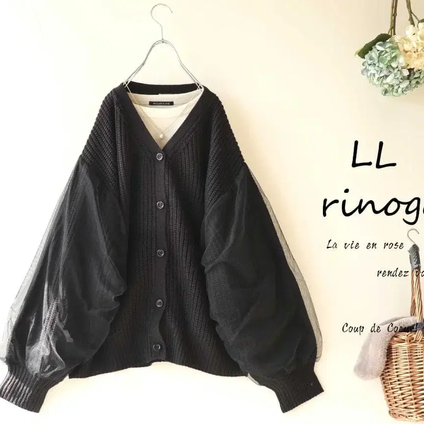 새상품할인 LL 블랙*소매 튤 레이스 배색 V넥 가디건 빅 사이즈